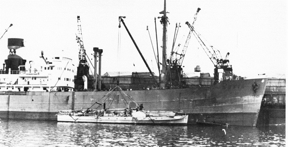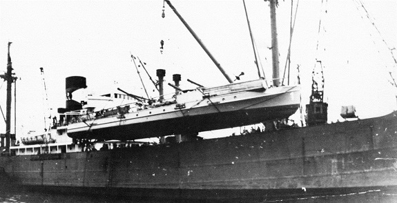 Разгрузка торпедного катера S-1 германской постройки для Болгарии