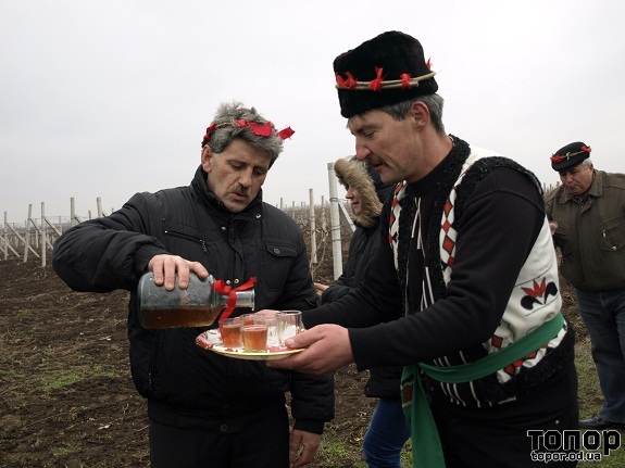 В соответствии с народным обрядом виноград окропили вином, приговаривая «Дай Бог здоровья, чтобы был виноград и вино». В это время женщины в национальных болгарских костюмах водружали всем мужчинам на головы венки из лозы, угощали всех искристым вином.